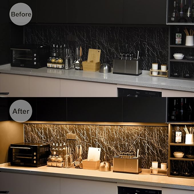- 【Reliable & Long Lifespan】---24-Months Warranty when they are installed and used as per the User Manual. This under cabinet LED lighting kit will bright a new look to your kitchen counters.