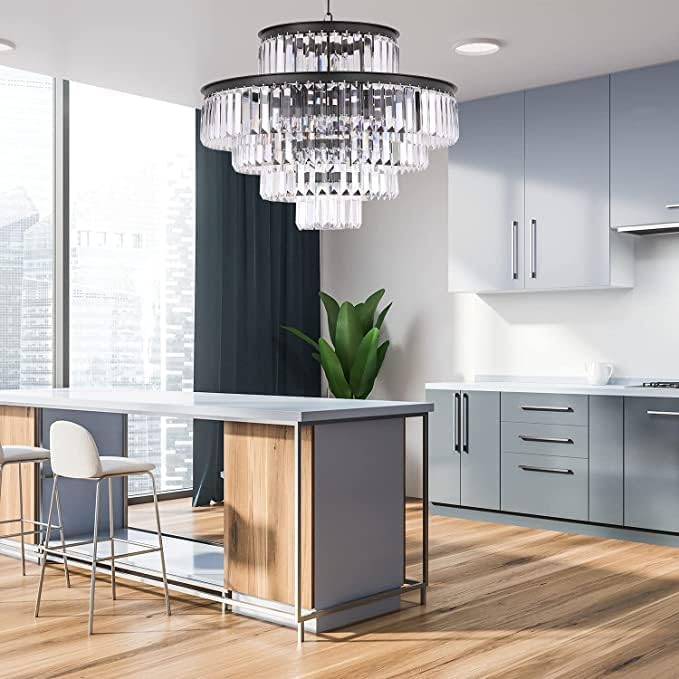 Black Modern Style Crystal Chandeliers & LightsRound Hanging Classic, Pendant Ceiling Chandelier Lighting Fixture 5-Tier for Dining Room Living Room(24 inch,Black)