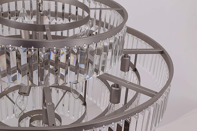 Modern Style Crystal Chandeliers & LightsRound Hanging Classic, Pendant Ceiling Chandelier Lighting Fixture 6-Tier for Dining Room Living Room(Nickel,31inch)