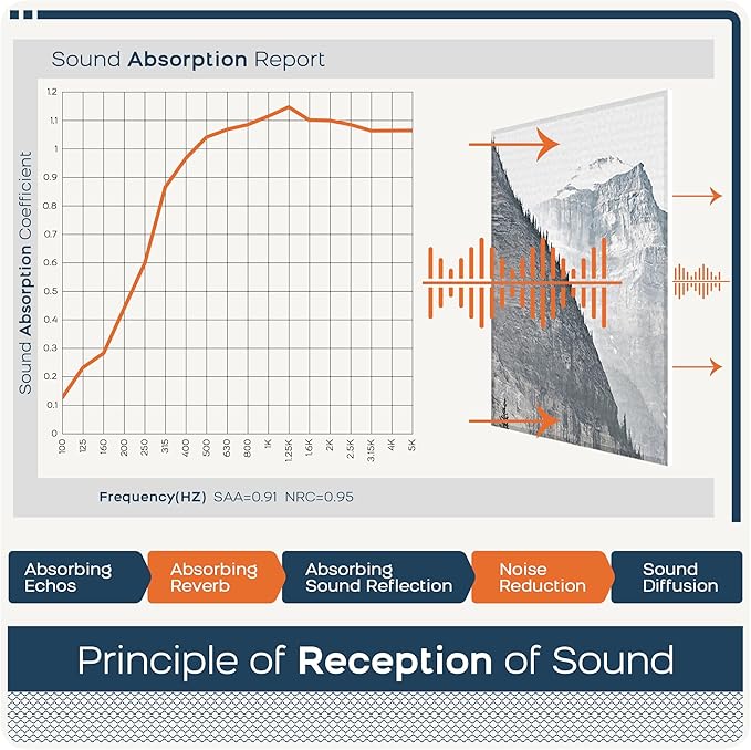 - THE ACOUSTIC TREATMENT YOU ARE LOOKING FOR -- If you are serious about acoustic treatment, stay away from acoustic foam. Our Premium Acoustical wall panel exceptional sound absorption minimizing reverberations and echo. A step improvement in your sound experience and recordings and room decoration. For home & professional studios, home theaters & more.