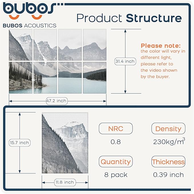 - THEY LOOKS GOOD --- Modern Design with elegant pattern& beveled edge. Get creative and form good-looking decorative patterns with BUBOS Acoustic Panel.Reduce your primary reflections for superior sound experience.