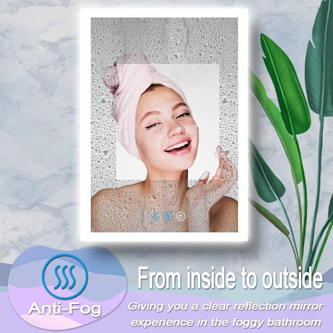 - đăTOP QUALITY & LONG ENDURANCEăT5.0MM Copper Free Eco-friendly Glass mirror, which is good for protecting you and environment.Aluminum alloy material back support and Fully enclosed backplate design, that prevent fog from entering the circuit of the mirror.Energy efficient LED light strip,excellent illumination and low consuming energy,efficient LED light strip bring high quality and durable use experience. The mirror has a memory function. When the power is turned off and then restarted, it will return to the previous state of use.