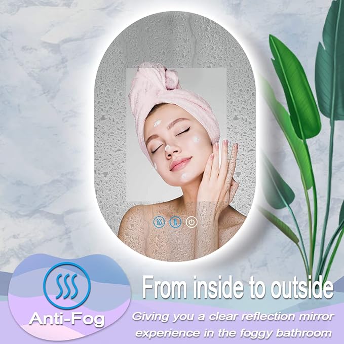 - đăLighted Bathroom Vanity MirrorăThis Oval backlit led mirror is 32x20 inch with modern and unique design is compatible to all your decoration style and improve your bathroom that looks fashionable and luxurious. High quality Lights dimmable 3000-6000K, Which can provide a soft and comfortable visual light experience. This is not only a mirror, but also a piece of art in the bathroom which can give you convenience, also bring you a nice mood for the day.
