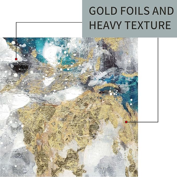 - Blue Abstract Painting: A layer of hand-applied gold foils adds a special luminous effect to the beautiful artwork, taking the bland, flat large modern paintings to surreal. The delicately embellished gold accent gives the whole art a stunning effect visually under lights