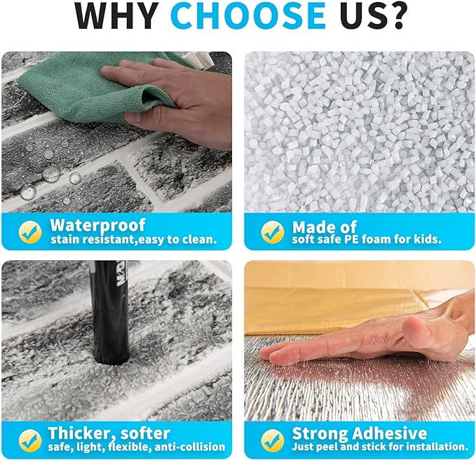 - Features: Square sheet with brick design, easy to match installation, Peel and Stick, Acoustic, anti-collision, waterproof, and stain resistance.
