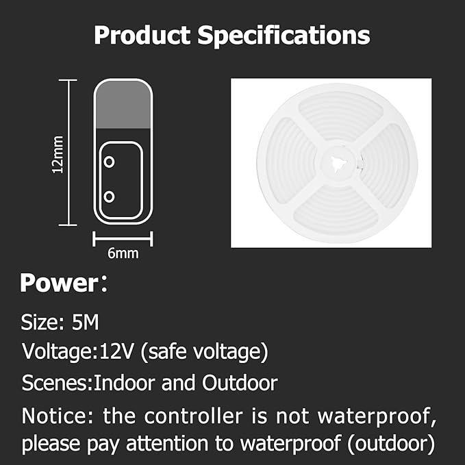 - Safety First: 12V safe low voltage with UL-certified power adapter provides electricity protection. One-piece silicone process provides better waterproof performance, waterproof rating up to IP65, anti-UV, no fear of rain, suitable for indoor and outdoor use.