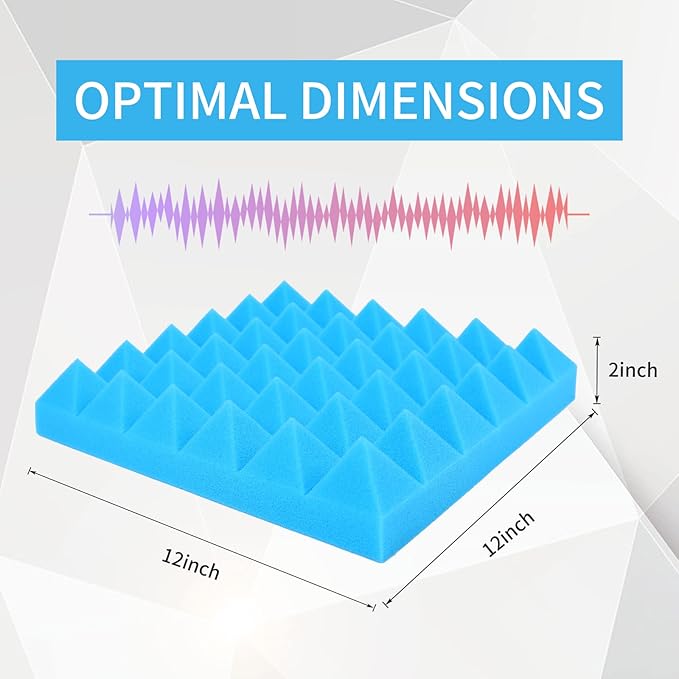 - Upgraded 2inch Thickened Sound Proof Foam Panels: Come in a vacuum sealed bag with 12 pack12 x 12 x 2 inch high-density acoustic treatment foam panel, which covers 12 sq ft totally, each tile covers 1 sq ft of 2 inch thick at its highest point; 2 inch thickness is better noise and echo reduction