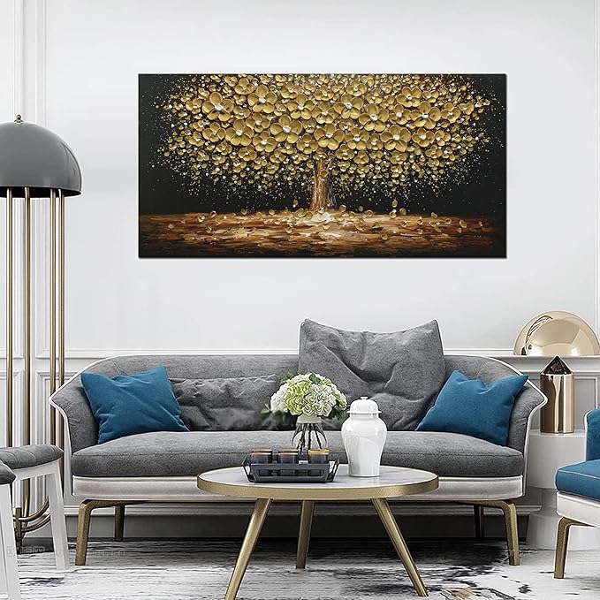 - Subject:The picture is golden tree & flowers, with good 3D texture effect.