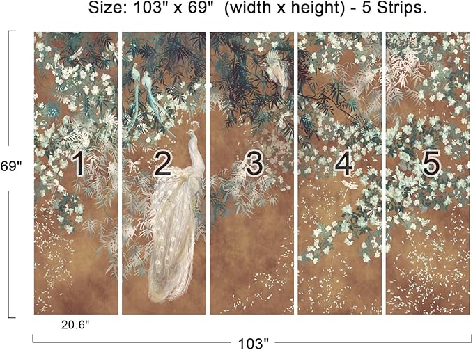 Cliouar-Wall Mural Wallpaper for Bedroom Living Room White Peacock 103" x 69"(Not Self-Adhesive)