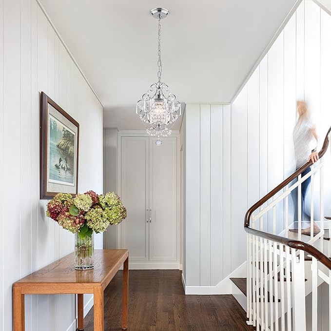 - 【Small Chandeliers Lighting】This mini crystal chandelier light fixtures with K9 crystal surrounds a bulb, Made of real crystal and high quality iron,adding a touch of light to your small space for a comfortable lighting effect.