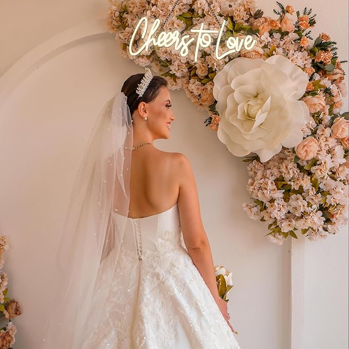 Lucunstar Cheers to Love Neon Sign Wedding Neon Sign Led Lights for Room Warm White Wall Decor Light Sign for Wedding USB Powered Sign Decor 16.5"X5.9"