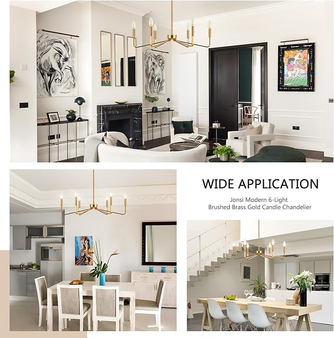 - 💡【Modern Design Style 】Jonis modern gold dining room chandelier is made of iron carefully selected by our product designer team. The arm resembles a candle and is designed with an open tubular structure that is corrosion and rust- resistant, giving this gold candle chandelier a long life. It not only illuminates but also acts as a decorative piece to add sparkle to your home.