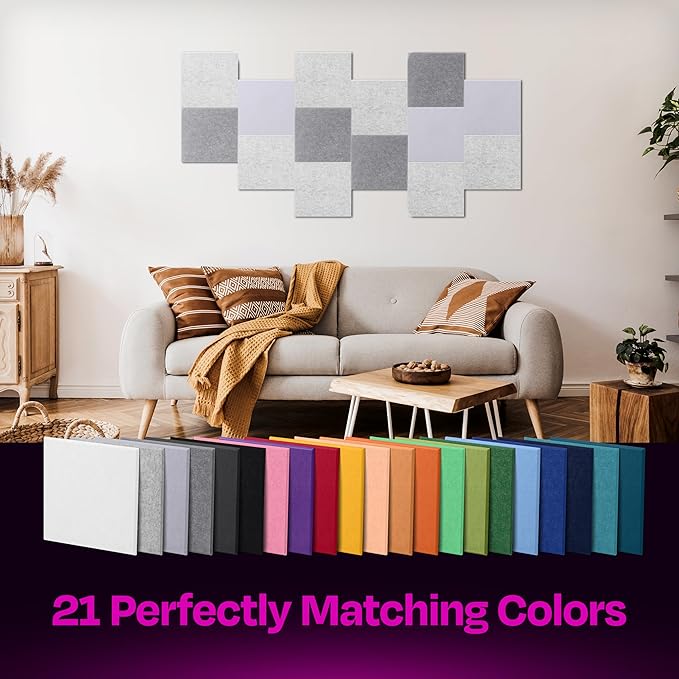 - 【HIGH DENSITY ACOUSTIC PANELS】: Improve sound quality and reduce echoes & reverb at your home, office, podcast studio, conference room and more. Give your space what it's been asking for, with our beautiful sound absorbing panels and keep unwanted noises down to a minimum.