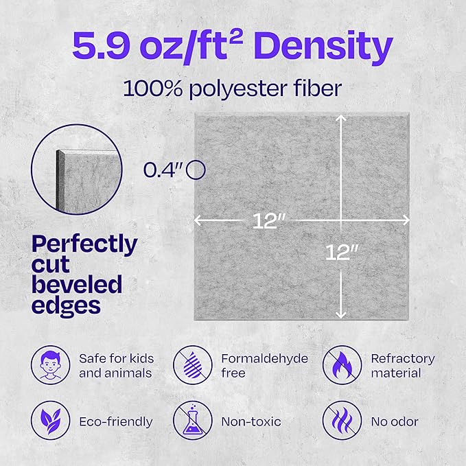 - 【EASY TO INSTALL & MULTI-PURPOSE PANELS】: Please note - No adhesive included. For best installation results, we recommend using a construction adhesive, applied on each corner, or a strong double sided tape. Perfect as recording studio acoustical treatments, our panels will improve the acoustics at your bedroom, living room, home office, blog room etc.