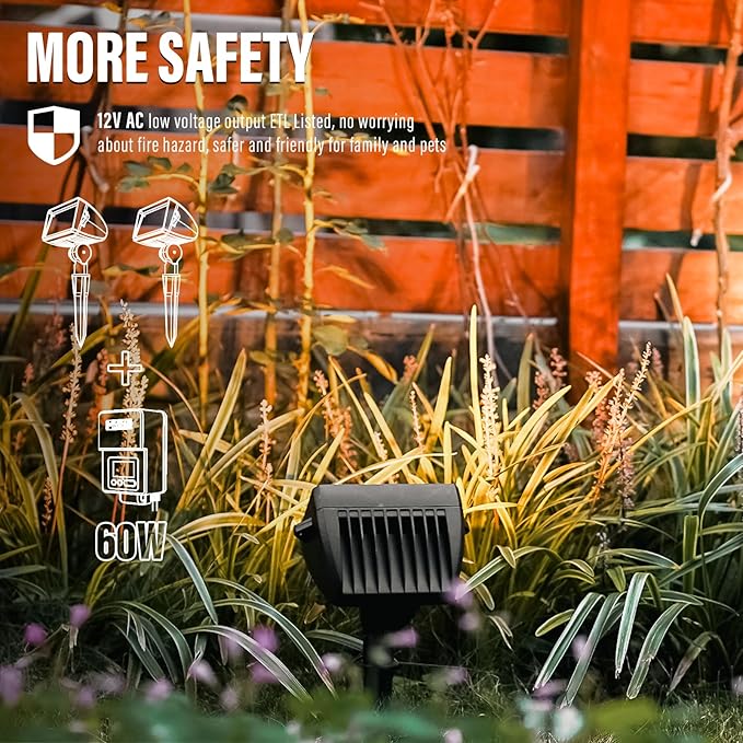 - Safe low voltage landscape lights: With 12-Volts AC working voltage, This fixture is compatible with most low voltage landscape lighting systems, low voltage transformer required for installation (NOT INCLUDED)