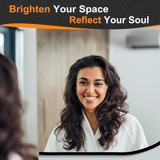 - EASY TO INSTALL: This modern decor bathroom mirror has two strong hooks on the back, and we have prepared screws in the package, only three steps to drill holes, install screws and hang the mirror.