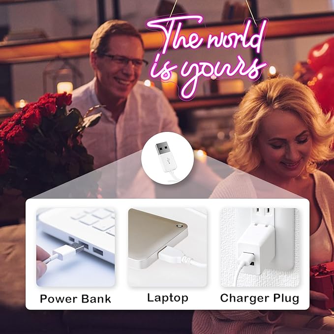 Lucunstar The World Is Yours Neon Signs Wedding Led Sign Pink Neon Light Up Party Bar Engagement USB Powered Led Sign for Wedding Decor Bedroom Signs for Wall Decor Light