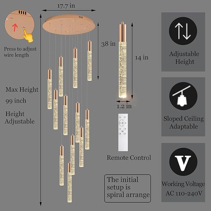 - EASY INSTALL: AC110-240V can use, Hard wiring, Minimal assembly required, includes all mounting hardware for quick and easy installation. The length of wire can be adjustable freely, sloped ceiling and vaulted ceiling compatible