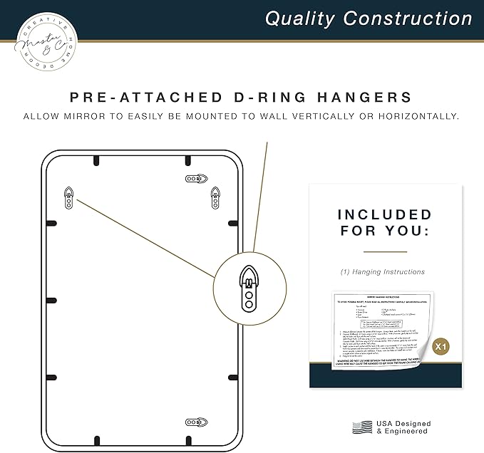 - Quality Construction: The hanging mirror's frame is constructed of a seamless, durable metal and the reflective surface is 3mm glass