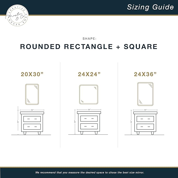 MCS Master & Co. Modern Metal Large Wall Mirror, Minimalist Home Decor Rectangle Mirror with Rounded Corners for Living Room, Bedroom, or Bathroom, 24 by 36 Inch, Brass
