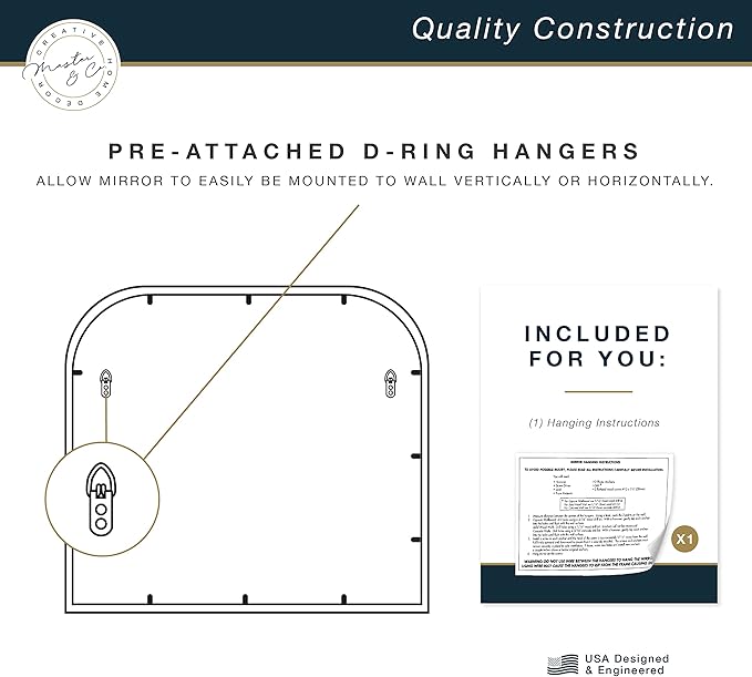 - Quality Construction: The hanging mirror's frame is constructed of a seamless, durable metal and the reflective surface is 3mm glass