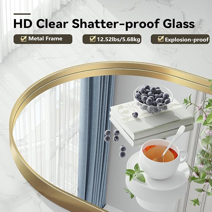 - Arched Top Mirror: Designed with an arched top frame. Brightify gold arched mirror adds a soft beauty to the space, which softens any room, making light bounce around the room, visually expanding the space. Ideal for making the space more elegant and classy