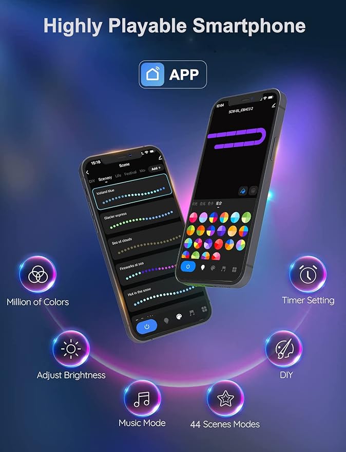 - 【Sync with Music】Built-in mic, gaming wall lights react to music of all genres in real-time, it senses audio and transforms your favorite songs into colored light for a stunning real-time audiovisual display! Sync smoothly even with ambient sounds emitted from your TV/PC.Choose from 4 modes (Classic, Rock, Jazz, Scroll), all great for party/date nights/gaming nights. Advanced IC chips, a rainbow-like effect can flow in a single block. Timer function make it easier to schedule