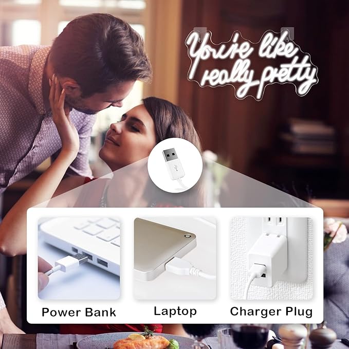 Lucunstar You're Like Really Pretty Neon Sign Led Sign White Led Neon Light for Wall Decor Light Sign for Wedding Dimmable Switch with USB Connectivity Neon Sign for Bedroom Decor Home Wall Decor
