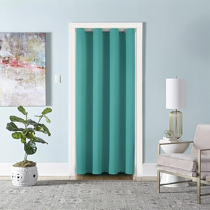 ChrisDowa Blackout Door Curtains for Doorway Privacy, Grommet Closet Curtains for Bedroom Closet Door, Thermal Insulated Temporary Doorway Cover Room Divider Drapes (1 Panel, Teal, 34 x 80 Inch)