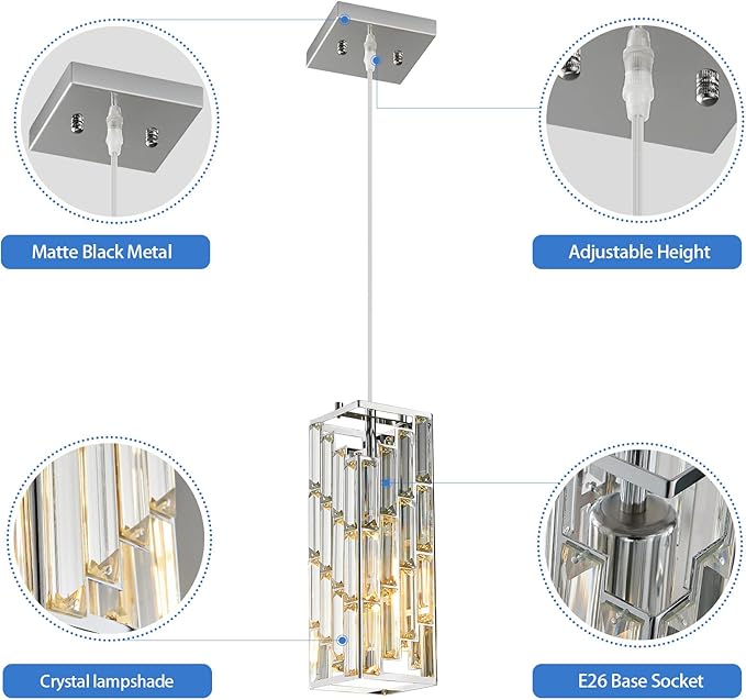 - 【Easy to install】 Hardwired, no need for complex installation procedures. This pendant light fixture is designed specifically for American standard junction boxes and can be installed on a flat or inclined ceiling. The packaging includes all necessary components and additional replacement crystal strips. Attention: For your safety, please install under the guidance of an electrician.