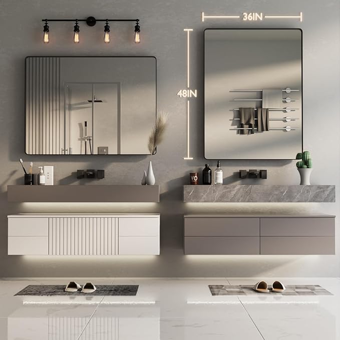 - ✔【Multi-size & Modern Design】 Classic rectangle rounded corner mirror with simple classic clean line features the modern fashion style. Various colors and sizes suitable for bathroom, vanity, farmhouse, bedroom, living room, dinning room, entryway, a great wall mirrors decorative choice!