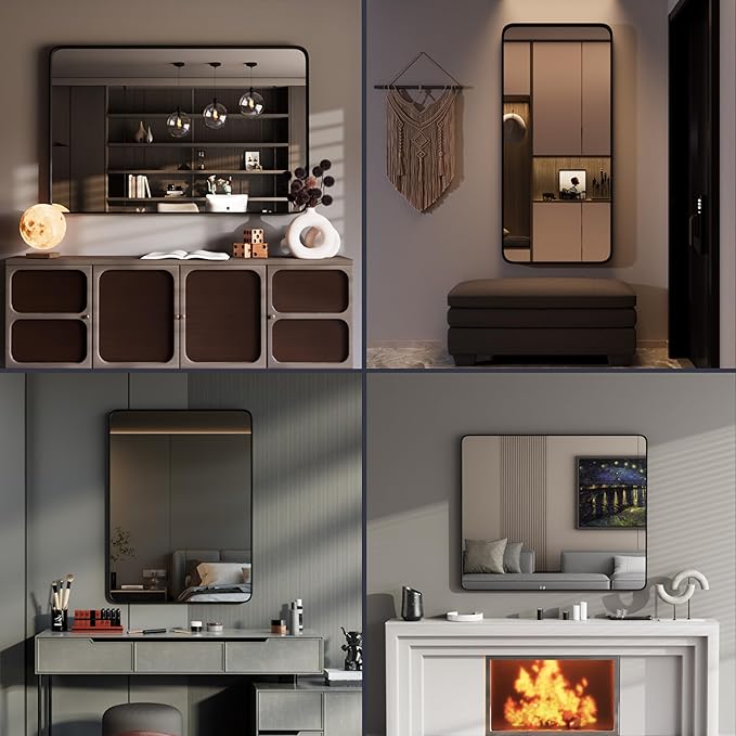 - ✔【Multi-size & Modern Design】 Classic rectangle rounded corner mirror with simple classic clean line features the modern fashion style. Various colors and sizes suitable for bathroom, vanity, farmhouse, bedroom, living room, dinning room, a great wall mirrors decorative choice!