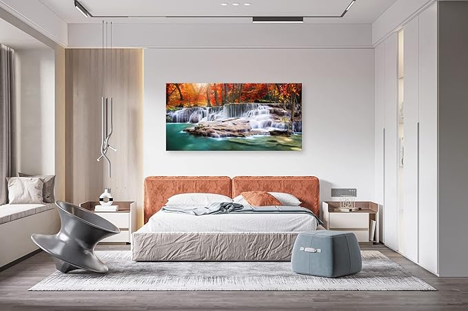 Aibonnly Wall Art Canvas Painting Red Forest Waterfalls 1 Piece Modern Landscape Tree Picture Poster Print Framed and Stretched Ready to Hang for Living Room Bedroom Kitchen Office Home Decor