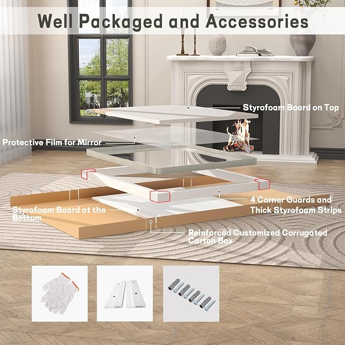 - Get One Perfect Mirror: Each VANLIO Silver bathroom vanity mirror is packed well with all-arround customized protective Styrofoam. Our package design has passed several drop and impact test, which is very sturdy and make sure to provide mirrors in perfect condition for you. We are responsible for any damage or breakage on arrival.