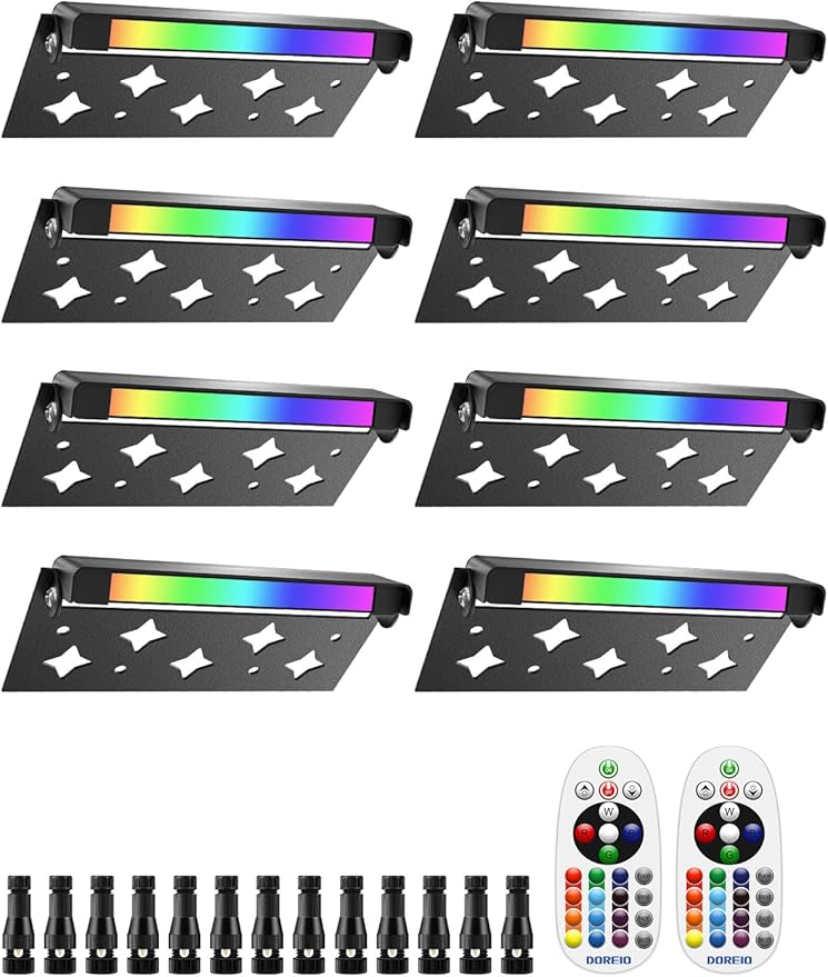 5W RGB Retaining Wall Lights 7 inch LED Hardscape Lighting Color Changing Low Voltage Landscape Paver Lights 12V 24V Step Lights Outdoor IP66 Waterproof Stair Lighting (8 Pack+Connectors)