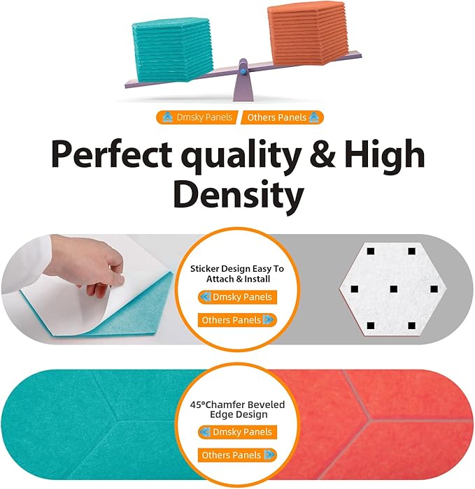 - đ¸ăEasy to and InstallăHigh density sound proof foam panels not only enhance the acoustics of the room, but also create different styles of decorative wall art in your favorite spaceThe biggest difference with other acoustic panels on the market is that our panels come with self-adhesive.Just peel off the protective film and stick it to the walls ,door and ceilings.