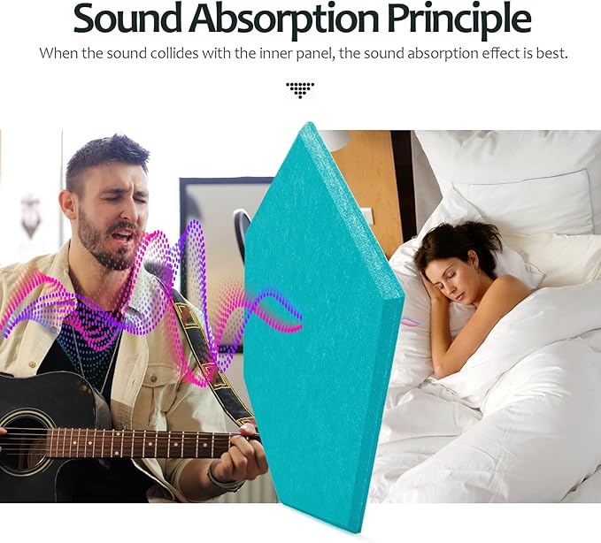 - đ¸ ă Soundproof Panels Cover Large Areasă18 pack covers 11.3 square feet,This sound panels adopts 45°Chamferin beveled edge design, it can leaves no gaps in installation , which can not only reduce and absorb unwanted echoes, waves, reverb and flutter echoes, but also play a role in decorating the wall surface.