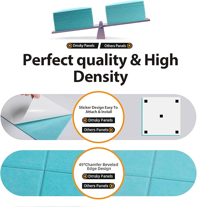 - [45°Chamfering Process] The sound panels for walls innovatively adopts a 45°chamfering process, which leaves no gaps in installation, and is stylish and beautiful. The polyester fiber material is easy to cut, and the built-in glue can be disassembled, and it will not cause damage to the wall!