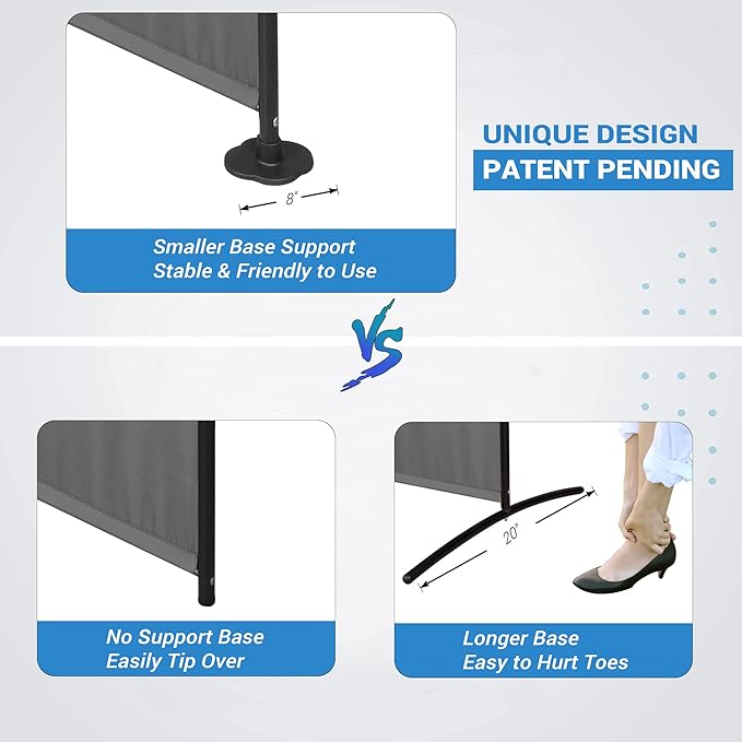 - 【UNIQUE DESIGN】Designed with patented smaller yet stable base support, it ensures the stability, space-saving storage and avoid the risk of hurting feet. Max size is 120”W x 72”H. Recommend to use in a zig-zag shape with width 110”/9ft.