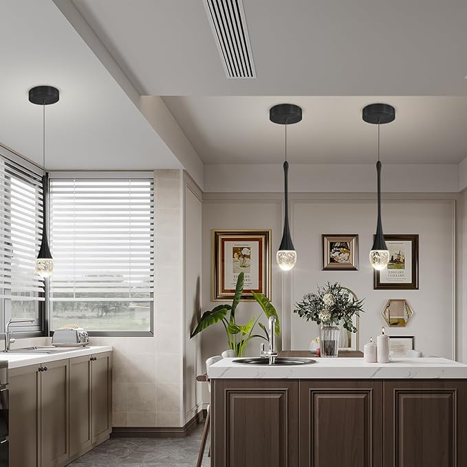 Modern Pendant Lights for Kitchen lsland LED Dimmable Raindrop Chandelier Crystal Ceiling Pendant Lighting for Dining Room Hallway Bar Living Room (3 Pack)