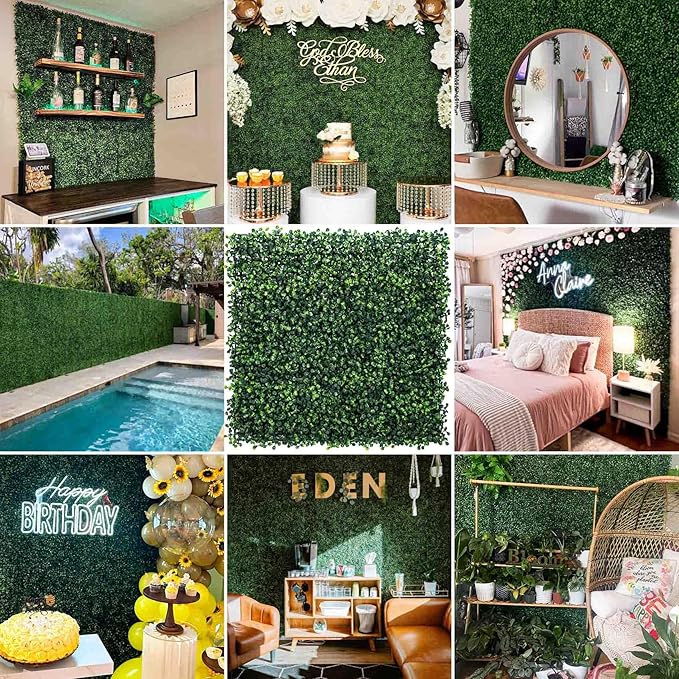 - Multiple Usage Grass Wall: Faux plant wall can be used to decorate outdoor areas or the interior of the room, aesthetically enhance your area with a realistic look to beautify and transform your patio, porch, privacy screens, wooden fencing, yard, backyard, walkways, home and office facade, wedding photography backdrop, stage backdrop and more. A prefect decoration of wall greenery decor.