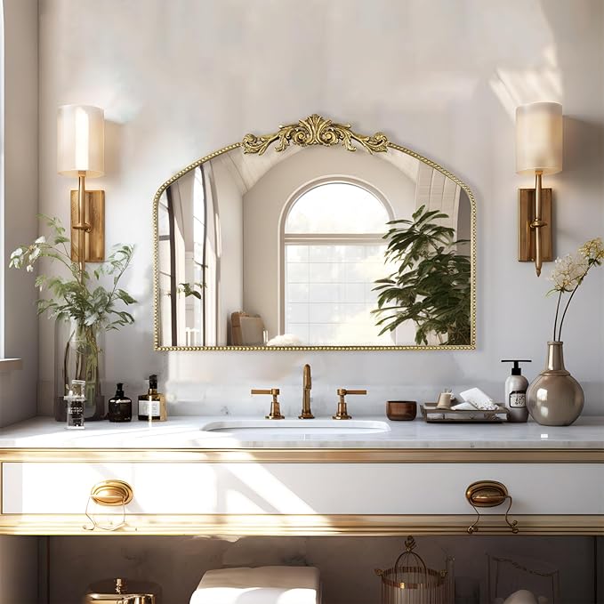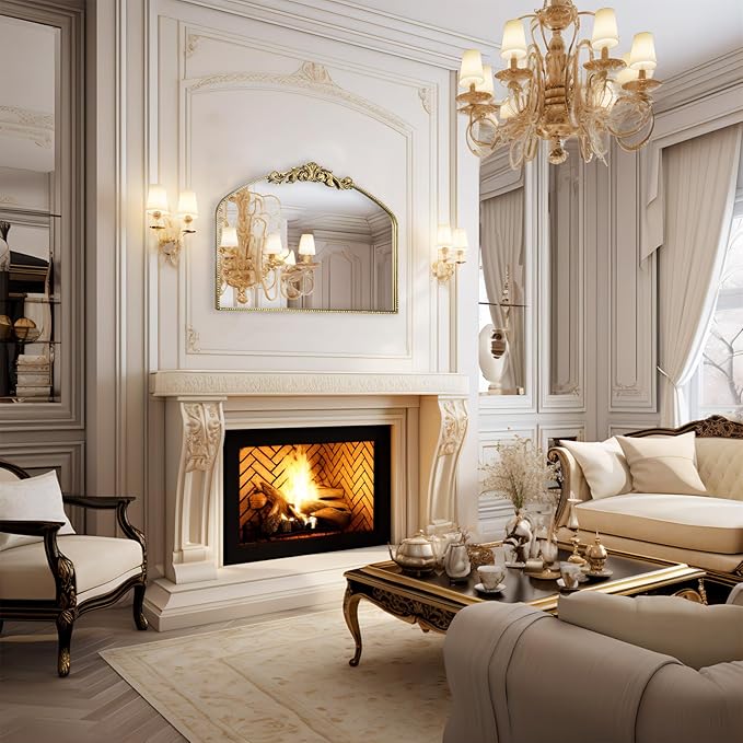 AIXI HOME Vintage Gold Arched Mirror 40"X31", Antique Baroque Mantel Wall Mirror with Ornate Metal Frame for Entryway/Fireplace/Living Room/Hallway/Bathroom/Bedroom