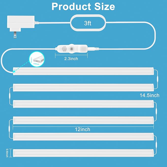 - 【Super Bright】With 162 high brightness LEDs, 2400 lumens(6 Pcs), 6000K daylight white, super bright, perfect to light your kitchen cabinets, garage, shelf area, closets, desk, workbench, stairs etc.