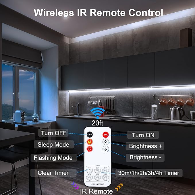 - 【Ultra Thin】0.25inch ultra thin, thin enough to hide perfectly under your cabinets, counters and workspace etc, make your lighting look very neat and clean.