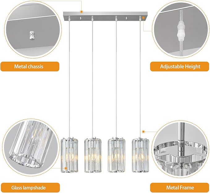 - 【Adjustable height】Worried about fitting the kitchen island lighting Chrome to your ceiling height? Fret not, Our product can adjust the height of the suspension cable between 0 to 49.02 inches, fully meeting your needs and ceiling height.