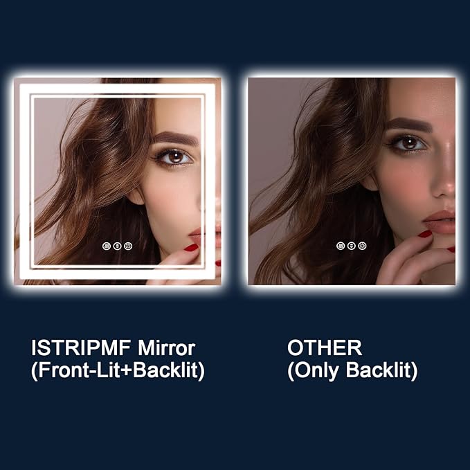 - Front and Backlit Design: ISTRIPMF LED mirror features both front and back lighting, brighter than the ordinary mirror. This mirror providing optimal lighting for your grooming needs. Making it a perfect addition to any modern bathroom;