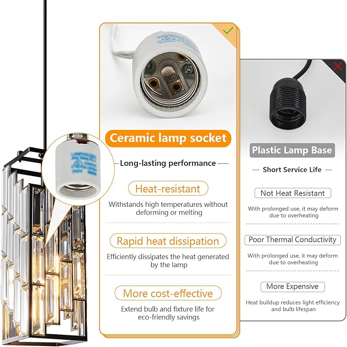 - 【Easy to install】 Hardwired, no need for complex installation procedures. This pendant light fixture is designed specifically for American standard junction boxes and can be installed on a flat or inclined ceiling. The packaging includes all necessary components and additional replacement crystal strips. Attention: For your safety, please install under the guidance of an electrician.