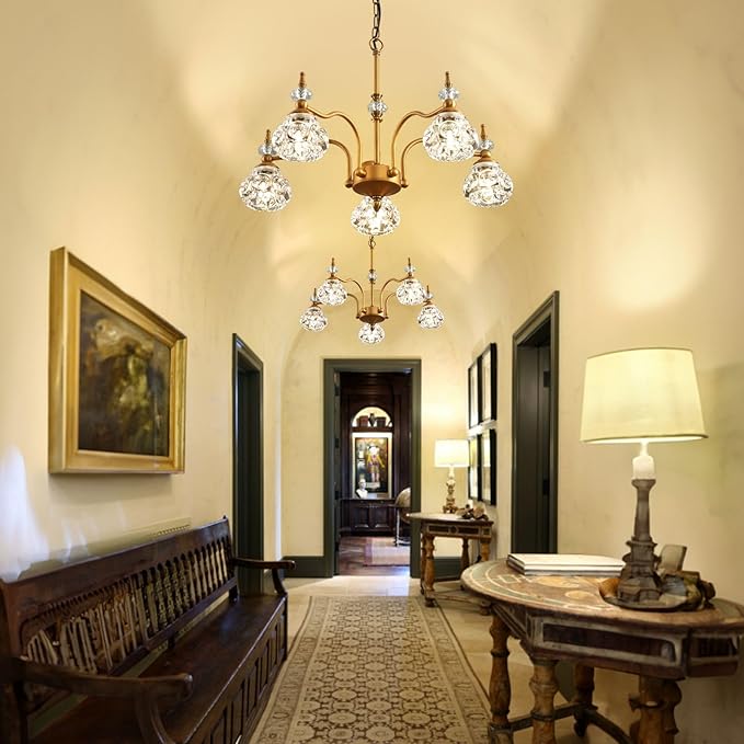 - ✔️【Victorian Chandelier & Beautifully Fit Any Space】You can hang this elegant easy to install fixture many locations. Such kitchen island or bedroom, Living room, dining room, villa, Hallway, Foyer, Entrance