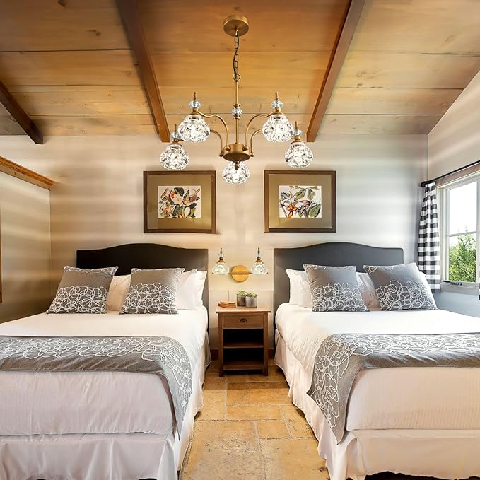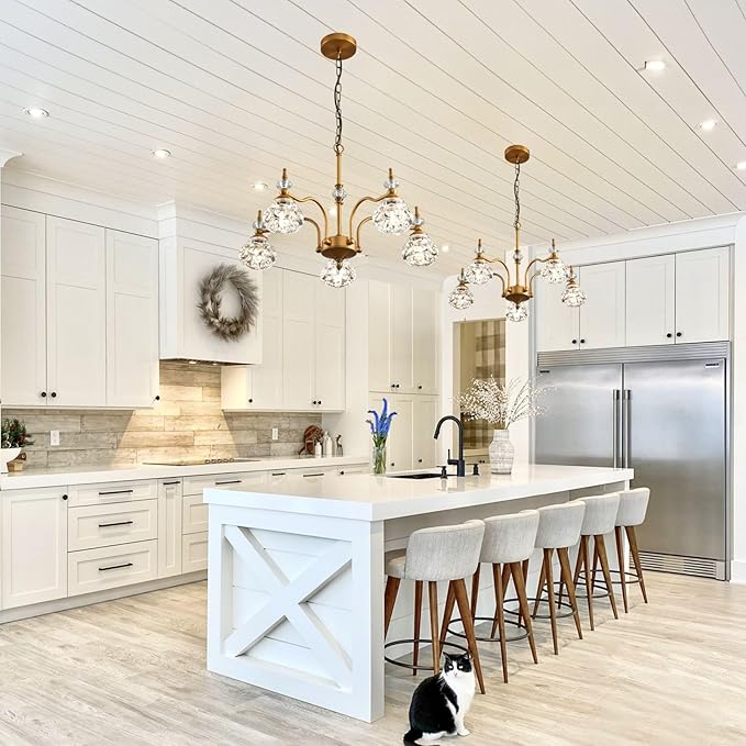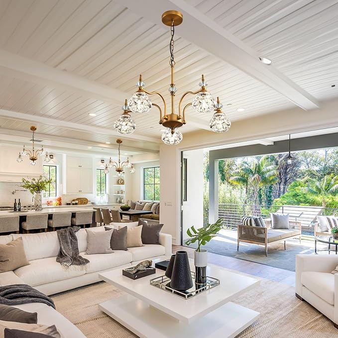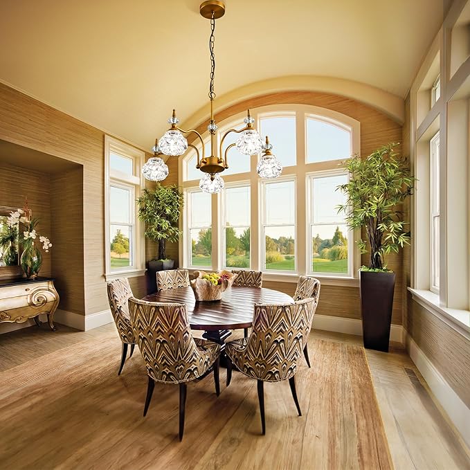 - ✔️【Easy to install】This Gold chandelier is compatible with all ceiling types including flat, sloped, slanted and vaulted ceilings. The installation manual is included to ensure that you can easily Installation of chandelier (bulbs not included).