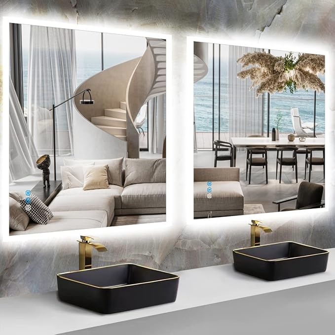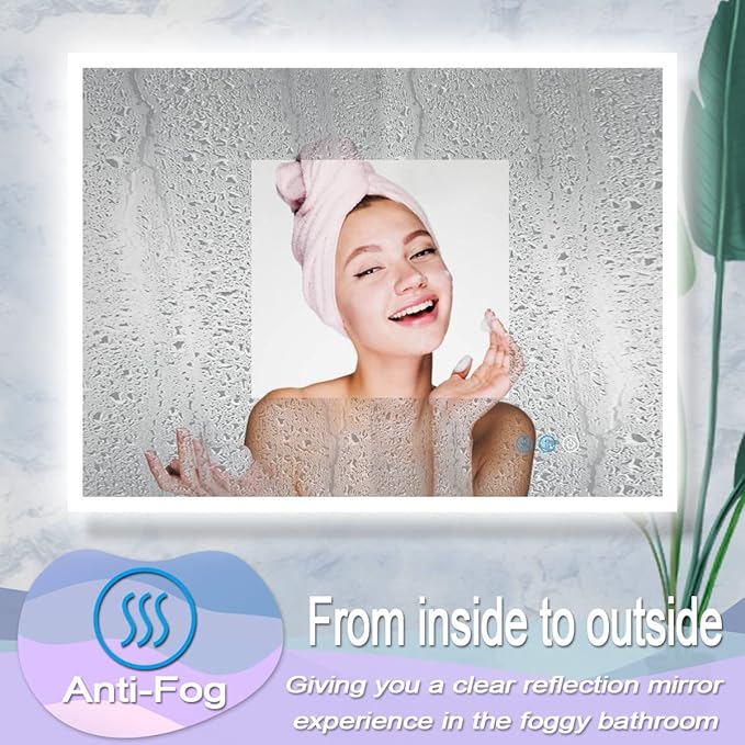 - đăTOP QUALITY & LONG ENDURANCEăT5.0MM Copper Free Eco-friendly Glass mirror, which is good for protecting you and environment.Aluminum alloy material back support and Fully enclosed backplate design, that prevent fog from entering the circuit of the mirror.Energy efficient LED light strip,excellent illumination and low consuming energy,efficient LED light strip bring high quality and durable use experience. The mirror has a memory function. When the power is turned off and then restarted, it will return to the previous state of use.